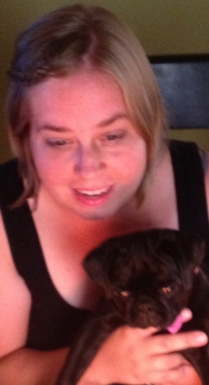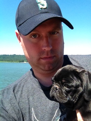 Me with ‘Minnie’ the pug, at a lookout over the Columbia River