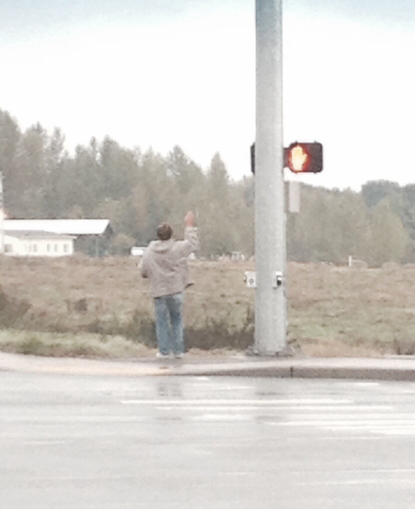 Thanks for reading and sharing your thoughts, Doug! I probably should have mentioned at the start, but this piece isn’t based on actual events, though I did take the pic of the man at the crossing sign while on my way to work. I tried to imagine what his situation might be – if he’s disabled or if he’s suffering from mental illness. This story was the result.