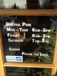 I have a short list of favorite places in the world. Central Perk Coffee in Puyallup may well top my list. When I pass from this world, there will be no need to scatter my ashes or bury me by some landmark. When I die, just know that Jesus has already built a replica of Central Perk – a Central Perk of the Heavens – where I may spend eternity in a friendly spot with great people and bottomless coffee. Of course, Sophie will need to be there too – at least, an angel disguised as Sophie.