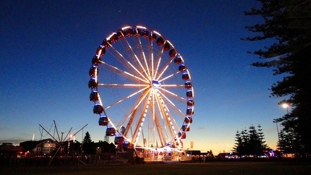 We were aboard the Ferris wheel, stuck at the top, while it went through its slow-motion paces, off-loading and reloading passengers. The day had been hot, but with the early Fall season, twilight made fast work of the daylight, ushering along a sweet, chill breeze that snuck upon us quickly and found us unprepared for the sudden drop in temperature. This is both the best and worst circumstance in which to kiss a girl for the first time–best, for the shroud of the Ferris wheel car and the pale amber of twilight offer privacy, while the cold encourages closeness–worst, for the inability to escape should the advance be met with awkward displeasure. In our case, it proved to be the best time.