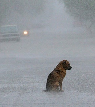It’s the potential, you see. It’s the knowing that something like that has most certainly happened before – some vicious asshole decided he hates his dog, and he drove that dog out onto the freeway, leashed him to a sign post, and left him; and worse yet – we all scooted by with our stereos chattering and our wipers flicking rain from our windshields and our phones checking Facebook – and there stood this poor, wretched animal. Scared and alone.