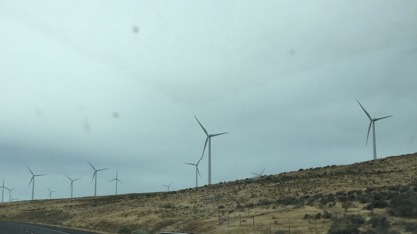 Desert plains give way to desert hills, and my truck becomes a mechanical sail against the violent winds – whipping, swirling, snaking about – and the windmill farms remind me that we as humans survive only by the generosity of the elements – Earth, Wind, Water, Sun.