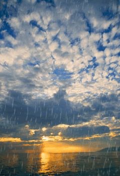 Then the rain slowed, thin shafts of sunlight painting strange colors upon the atmosphere. And the birds came out to play. They were tiny birds with tiny voices that danced and swirled about me while I slogged my way to shore. I heard joy in their little chirps, “Hello, and welcome! You are one of us now! Isn’t the rain wonderful?”